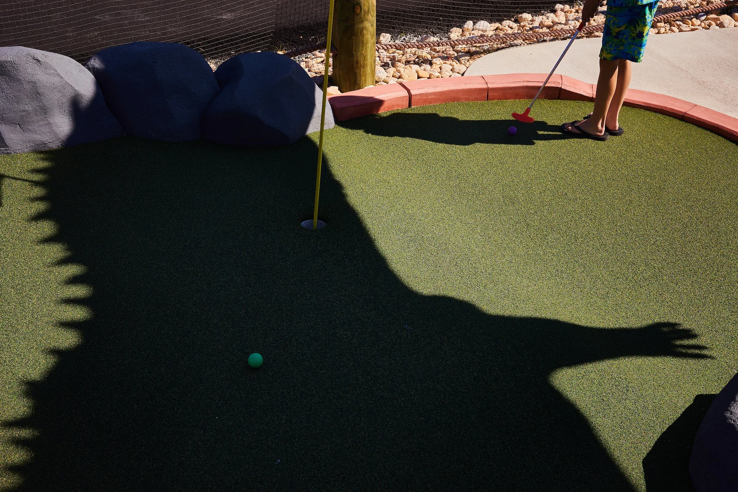 The invitational explores the whimsical yet chaotic world of miniature golf through the lens of forensic-style observation, revealing the intricate details that often go unnoticed in the blur of family fun. Modeled after forensic investigations, each image captures the wear and tear, playful absurdity, and emotional residue left behind on the greens—from the crowd of life sized dinosaurs in a hotel parking lot and peeling turf to triumphant high-fives and quiet moments of frustration. The project highlights the fine line between carefree entertainment and a rite of passage marked by lost balls, heated sibling rivalries, and the inevitable parental meltdown. By zooming in on both the charm and the decay, the series offers a deeper reflection on how this seemingly lighthearted activity mirrors the unpredictability of shared family experiences. A version of this essay about Maryland courses was recently published in Baltimore Magazine’s July 2025 issue. This project is on-going.